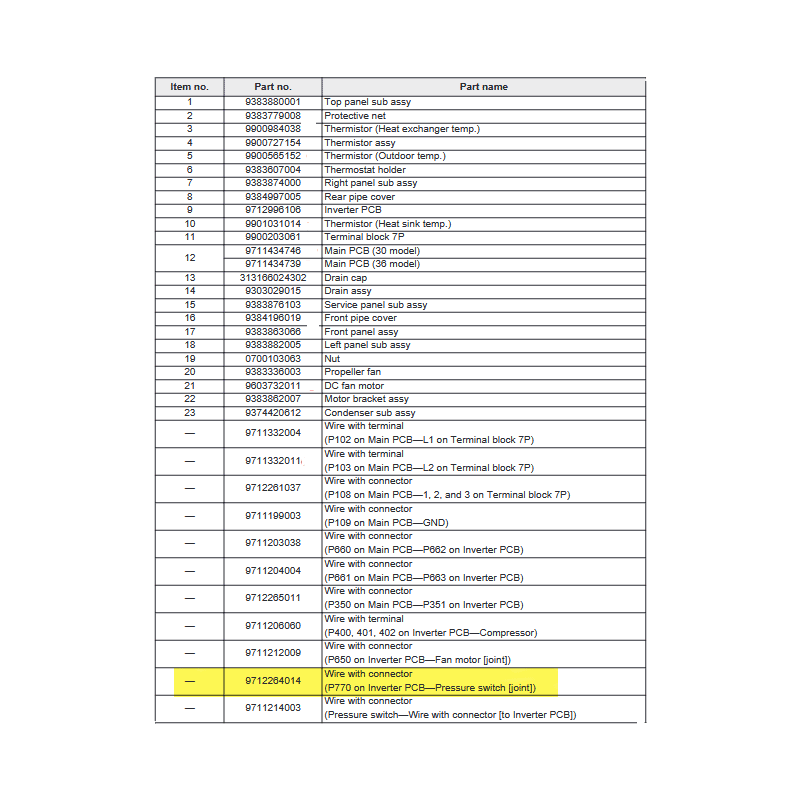 FUJITSU K9712264014 aka 9712264014 Wire with connector (P770 on Inverter PCB—Pressure switch [joint])