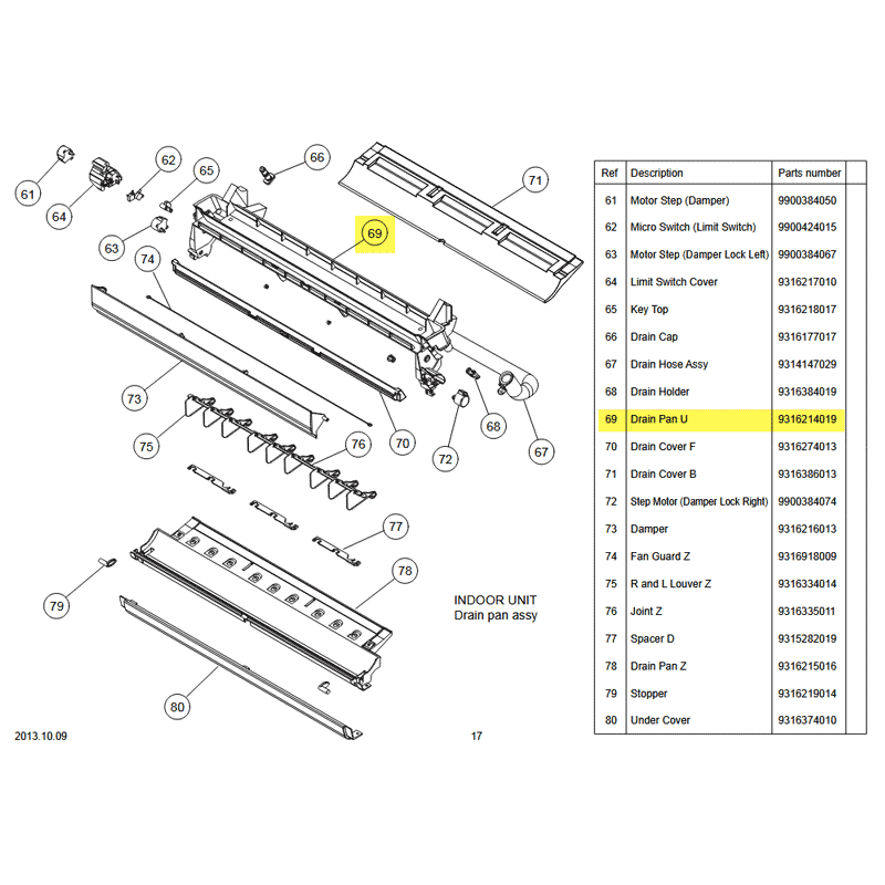 FUJITSU K9316214019 aka 9316214019 DRAIN PAN U HF
